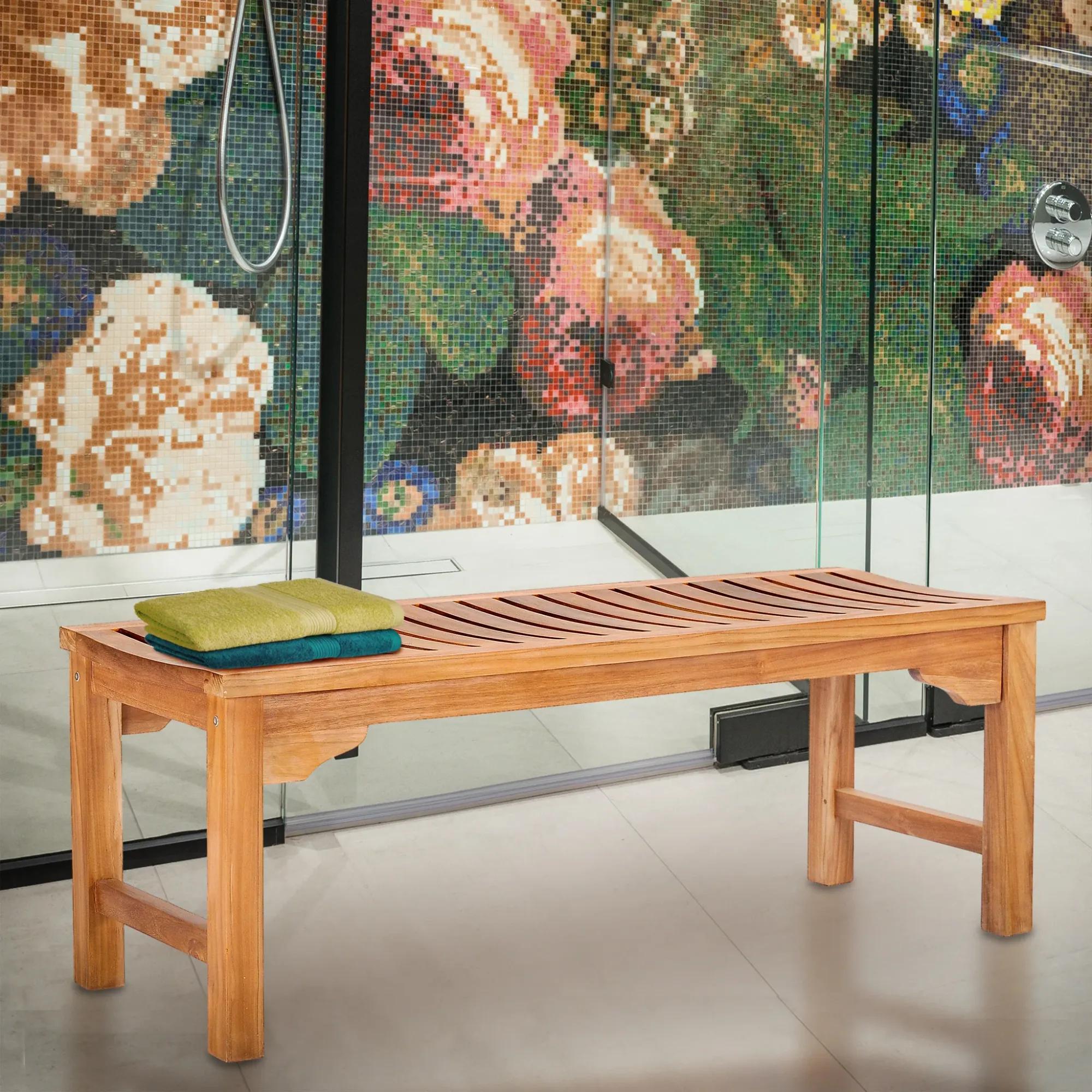 Teak is a favorite among homeowners for its resilience and natural resistance to water and mold. Its warm, rich tones bring a touch of elegance to any bathroom. While teak benches require minimal maintenance, occasional oiling can help preserve their luster and extend their lifespan.